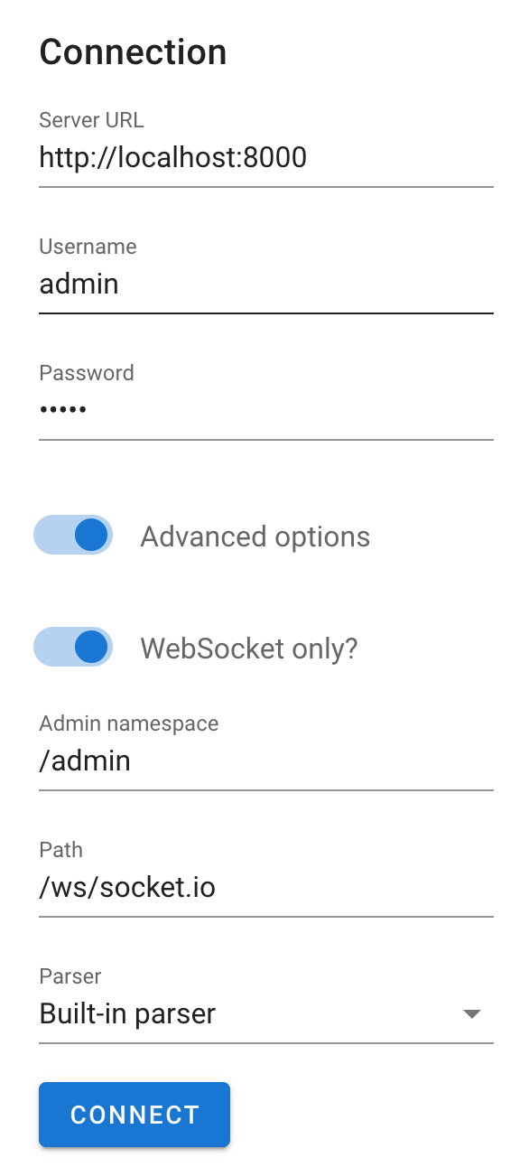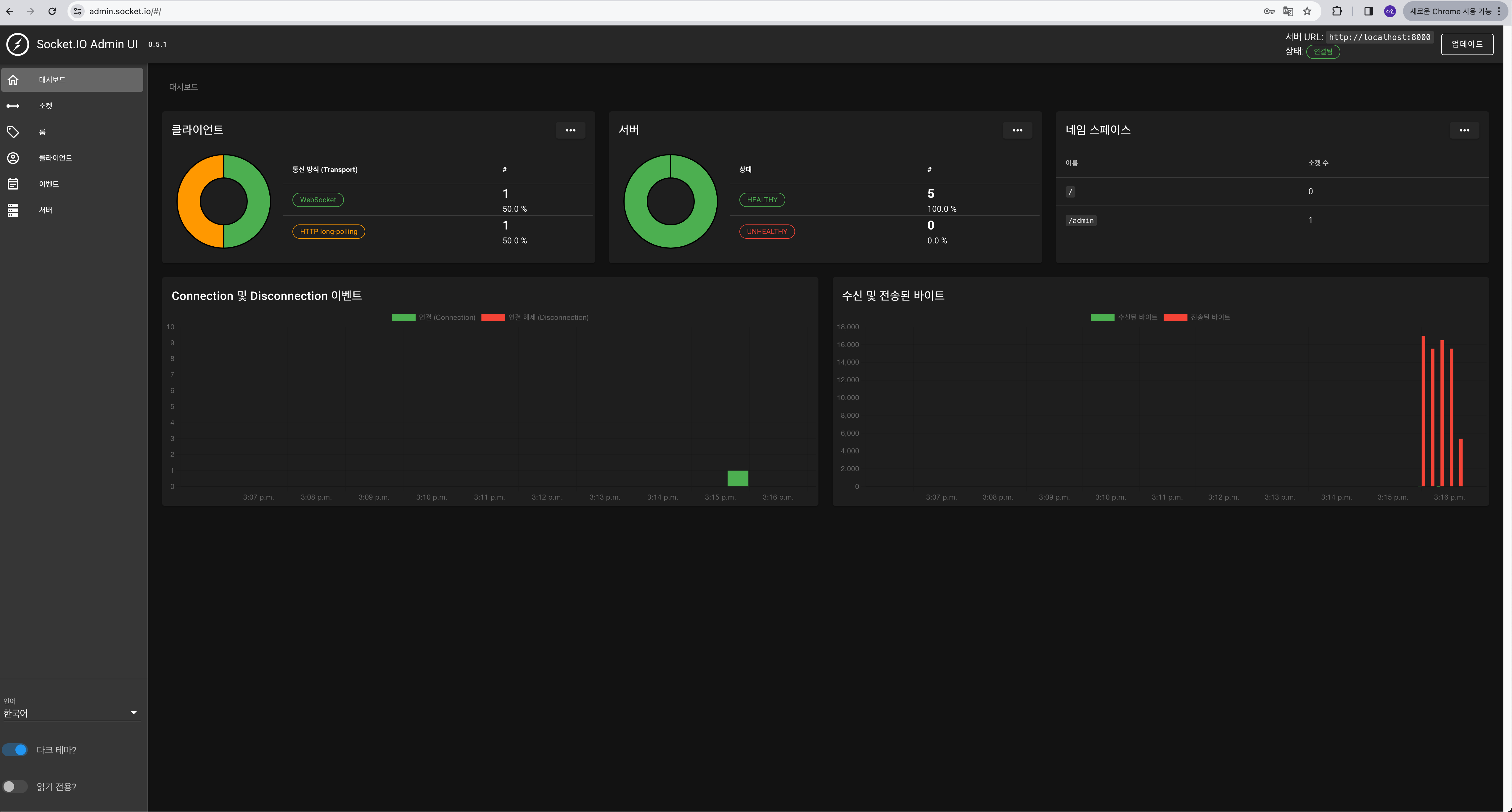 Socket.IO의 admin UI는 Socket.IO 서버의 상태를 실시간으로 모니터링할 수 있는 대시보드다.