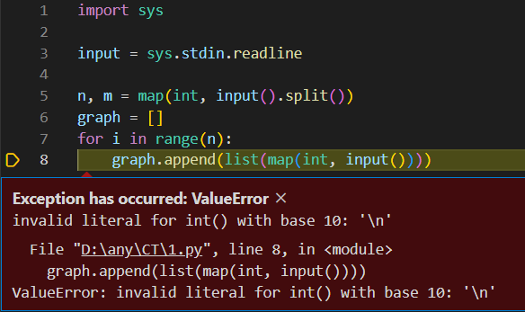 ValueError: invalid literal for int() with base 10: '\n'오류가 발생했다.