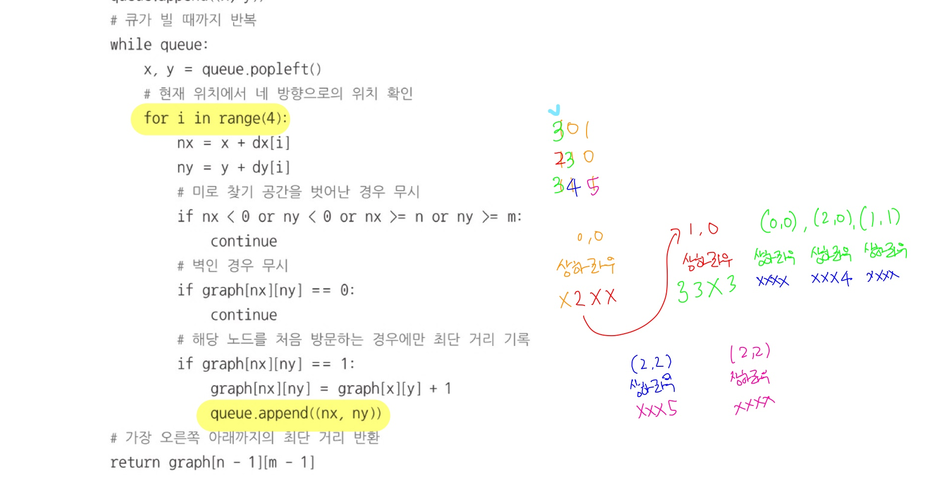 | 범위 제어 (1, 1) 시작 : x < 0 or y < 0 or x >= n or y >= m (0, 0) 시작 : x <= -1 or y <= -1 or x >= n or y >= m |