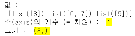 >> 각 리스트의 원소 개수가 달라 1차원 array가 생성