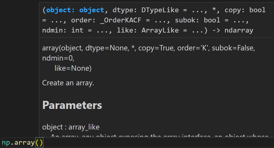 - np.array(__array__ 메서드가 배열을 반환하는 객체 또는 (중첩된) 시퀀스)