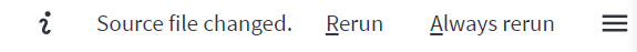 파이썬 파일을 수정하고 저장하면 웹에 아래와 같은 info가 나오고 Always rerun을 선택하면
